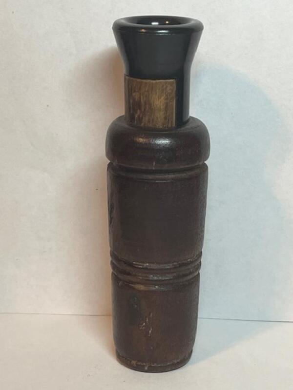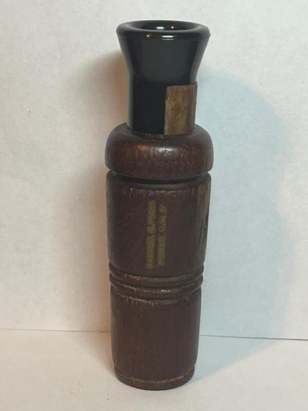 This Duck Call was made by Darrel Foss (1892-1962) of Venice, CA. Call is 4" and Reelfoot Style. Call has a Walnut barrel and a Bakelite Stopper. Call is stamped on the barrel and still shows the Gold color that was added. Call is in EX Condition.