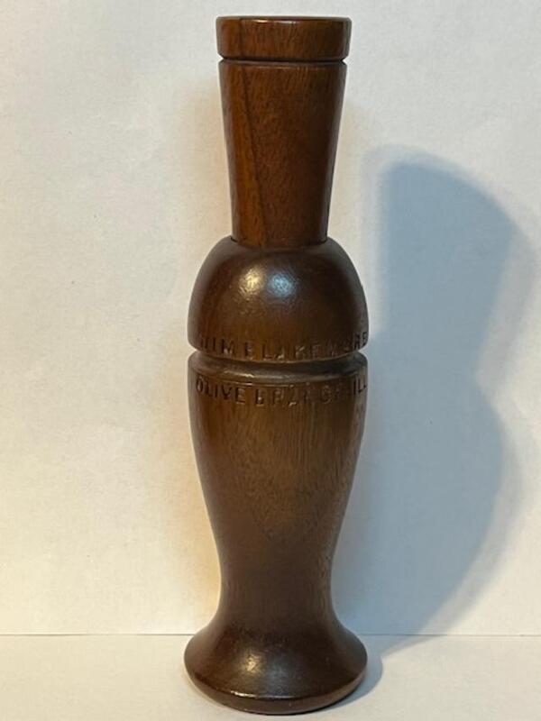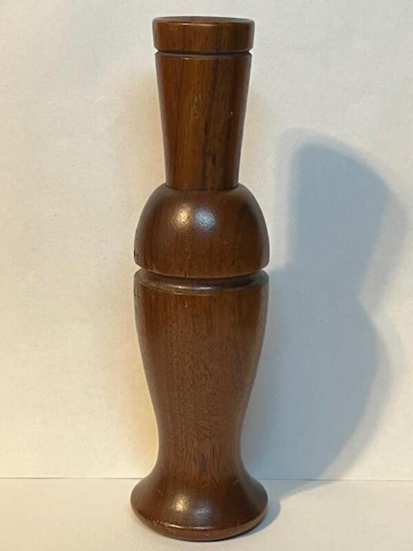 This is a Goose Call made by Jim Blakemore (1918-2011) of Olive Branch, IL. Call is made of Walnut and 6". Call is Stamped on the barrel with "JIM BLAKEMORE OLIVE BRANCH, ILL." Call is in EX Condition.